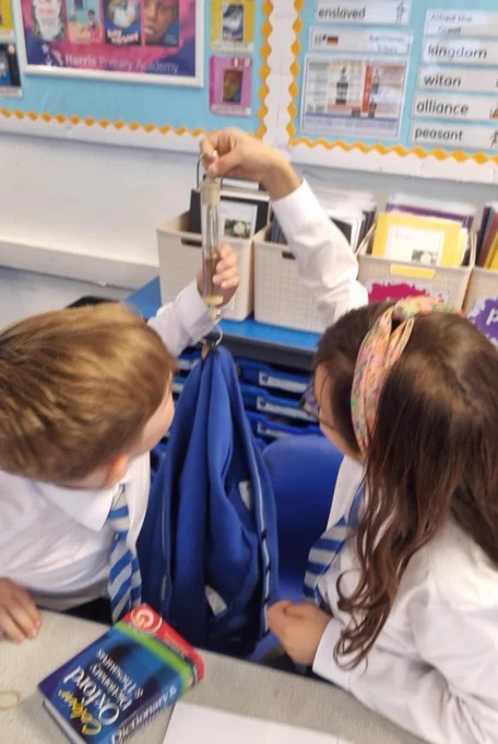In science this week, year 5 children used Newton meters to measure forces. 🥼